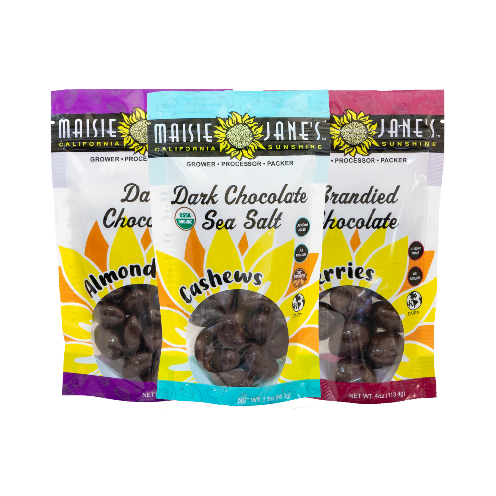At Maisie Jane’s, we believe indulgence should taste as good as it feels. That’s why nearly every treat in our sweets collection is coated in premium chocolate — from triple-dipped roasted almonds to tart dried fruits wrapped in velvety layers of different types of chocolate.