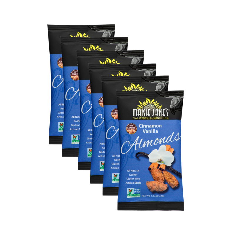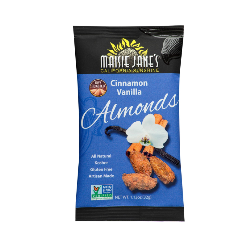 - Roasted & Flavored Nuts (Made at Maisie Jane’s): Produced in our Chico, CA facility, which does not process peanuts. However, these products are made in a plant that also processes tree nuts, milk, eggs, and soy. May contain shell pieces.