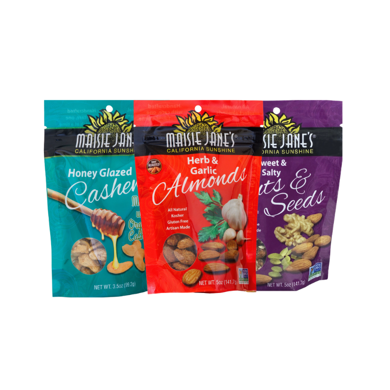 Each recipe is crafted in-house using fresh, high-quality spices sourced from around the world. From the comforting sweetness of glazed nuts, like the Honey Glazed Cashews, to the savory depth of Herb & Garlic Almonds, every flavor is uniquely Maisie’s. Perfect for gifting, sharing, or enjoying by the handful, these gourmet flavored nuts are made to bring joy — one flavorful bite at a time.