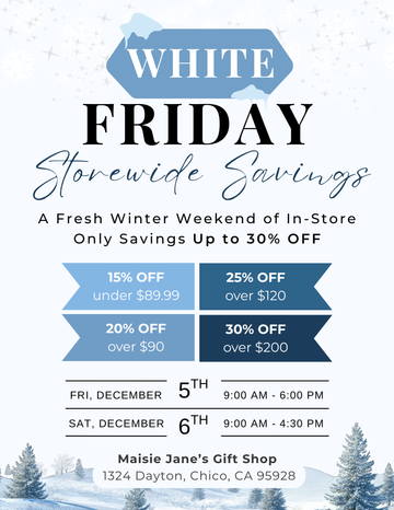 We're following Black Friday with White Friday at the Gift Shop! Enjoy up to 30% storewide when you stop in and shop with us. Finish your holiday shopping with us (and get something for yourself too!).