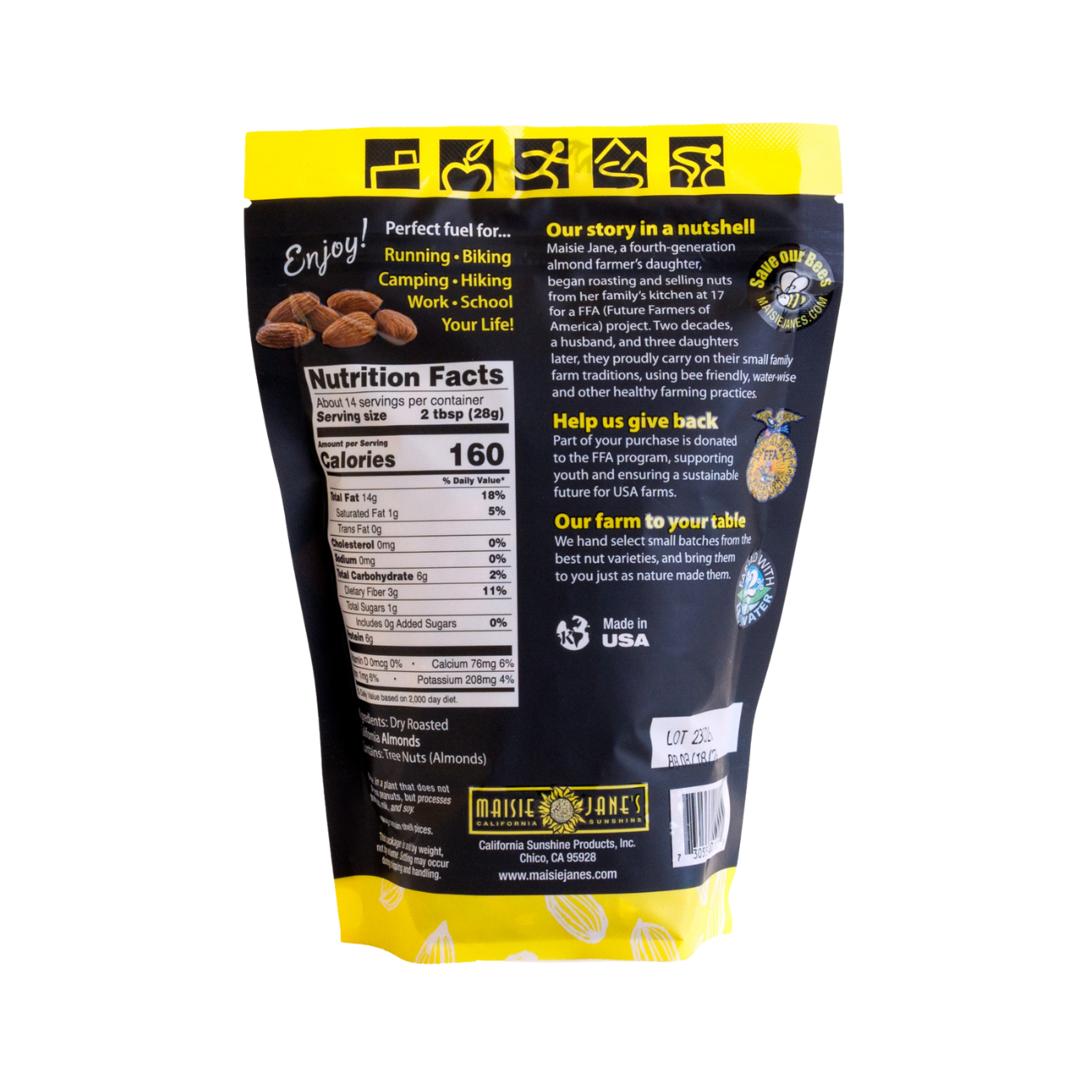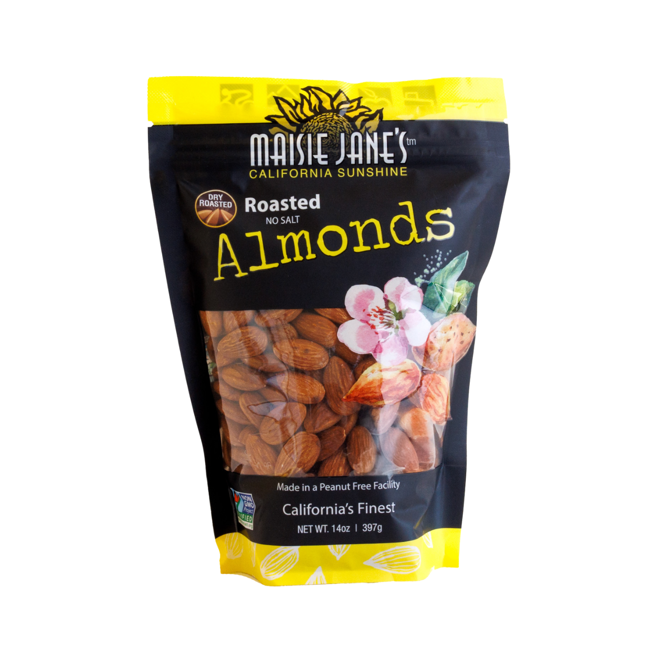 - Roasted & Flavored Nuts (Made at Maisie Jane’s): Produced in our Chico, CA facility, which does not process peanuts. However, these products are made in a plant that also processes tree nuts, milk, eggs, and soy. May contain shell pieces.
