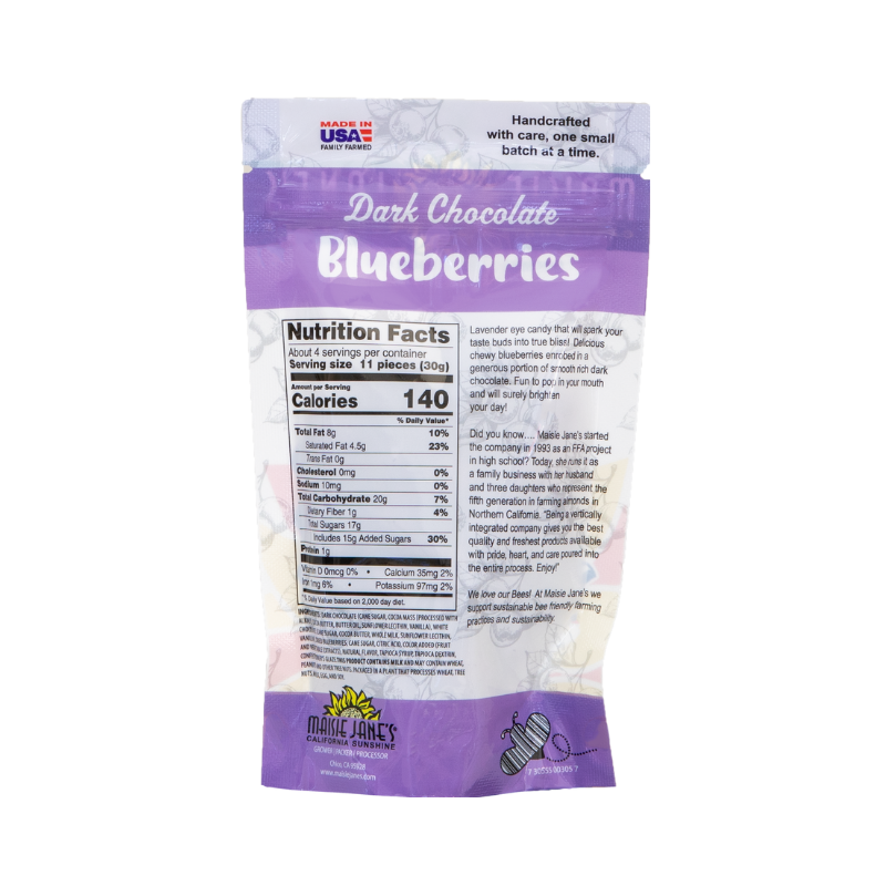- Roasted & Flavored Nuts (Made at Maisie Jane’s): Produced in our Chico, CA facility, which does not process peanuts. However, these products are made in a plant that also processes tree nuts, milk, eggs, and soy. May contain shell pieces.