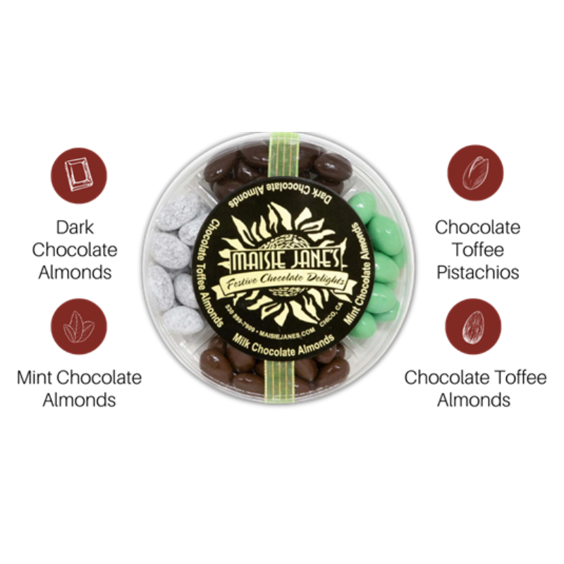 - Chocolate & Candy Products (Made by Trusted Partners): Crafted by trusted partners who use our nuts but process them in facilities that also handle peanuts, wheat, tree nuts, milk, egg, and soy. These products contain milk and may contain wheat, peanuts, shell pieces, and other tree nuts.