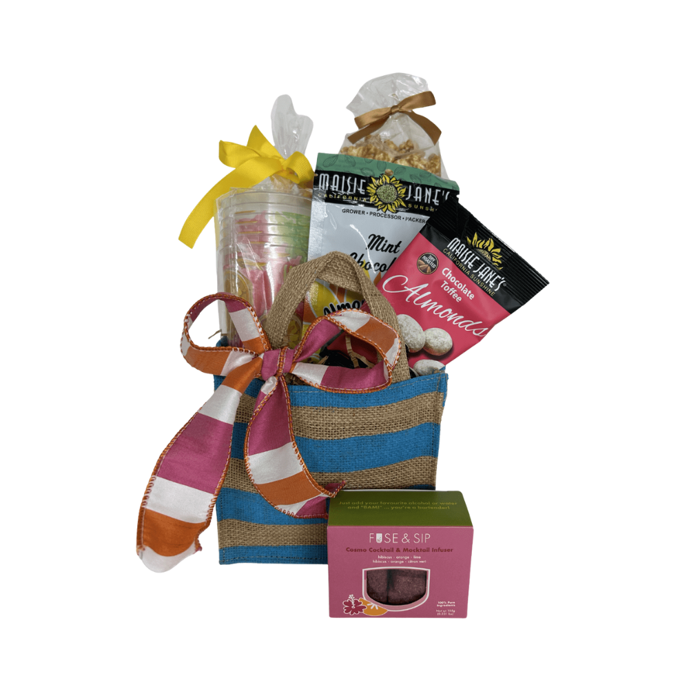 We thoughtfully choose quality containers—whether wicker baskets, tins, or other creative vessels—for our themed gift baskets. Each one is filled with delicious goodies, packed with recycled crinkle, wrapped in cellophane, and finished with a bow that’s tied by hand.
